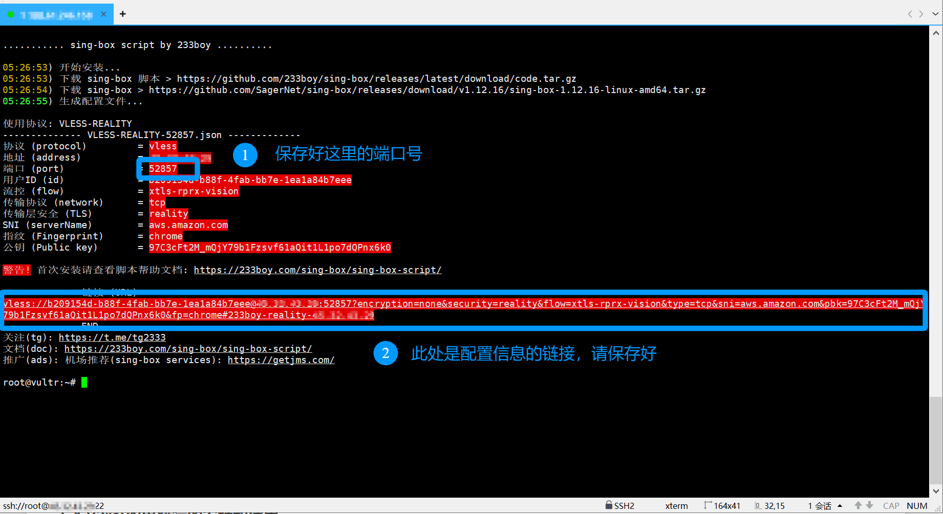 如果你使用的是233Boy脚本安装,直接复制Xshell中配置信息。